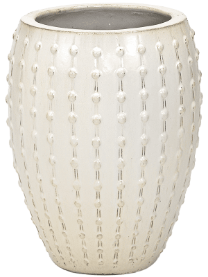Deze keramische plantenbakken zijn versierd met een bijzonder motief. De noppen aan de buitenzijde van de plantenbakken zorgen voor een stijlvolle uitstaling, zowel binnen als buiten.