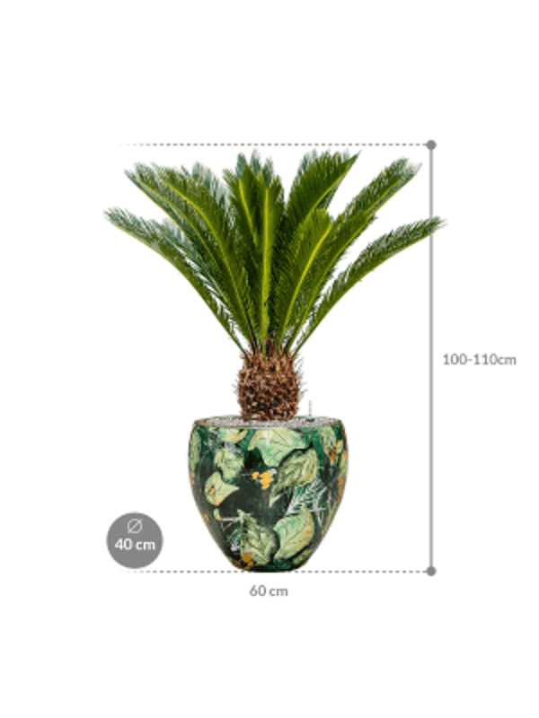 Cycas revoluta is een langzaam groeiende palmachtige plant, die gekenmerkt wordt door zijn harde, leerachtige, vederachtige bladeren. De plant kan wel tot 3 meter hoog worden. Deze plant ontwikkelt grote kegels en dragen mannelijke of vrouwelijke bloemen, waardoor individuele planten mannelijk of vrouwelijk zijn. Ondanks dat de bladeren frisgroen zijn, lijkt de plant dankzij zijn houtachtige stam meer op een palmboom dan op een varen.